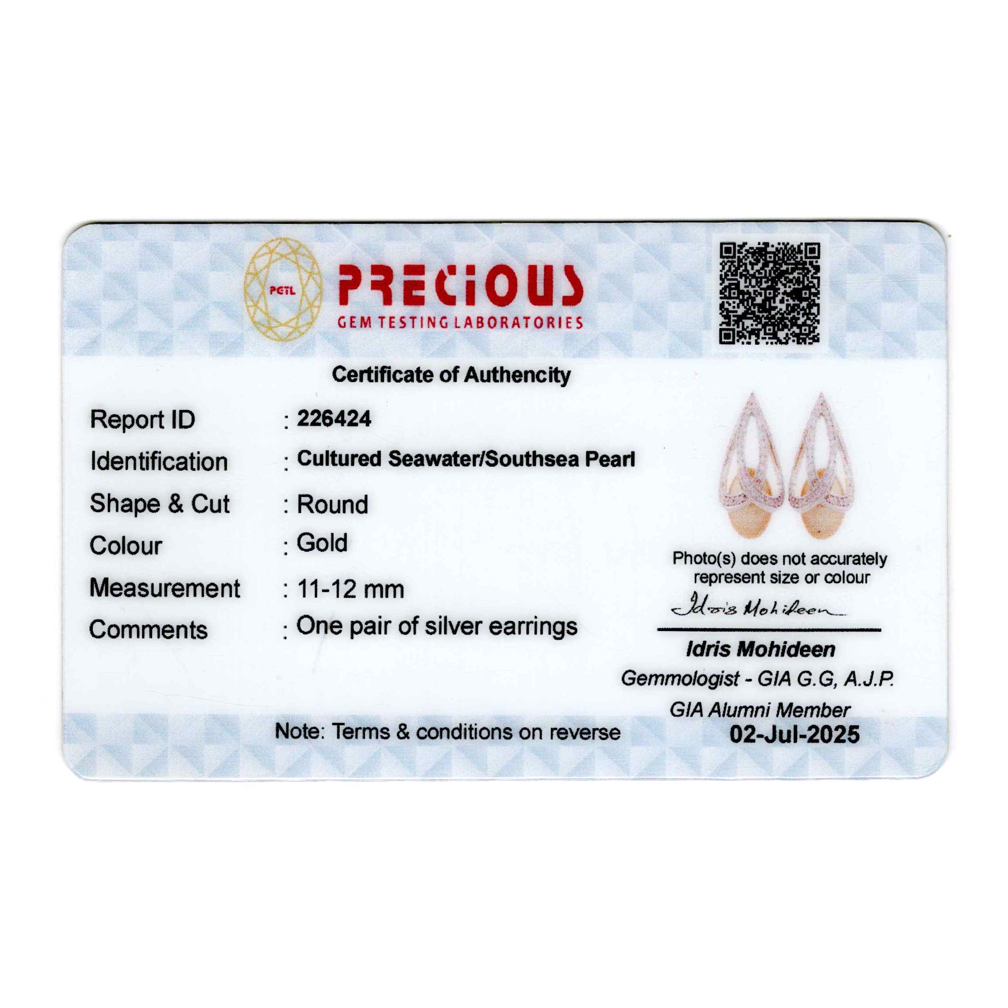 Elegant Silver Teardrop Earrings with Golden South Sea Pearls