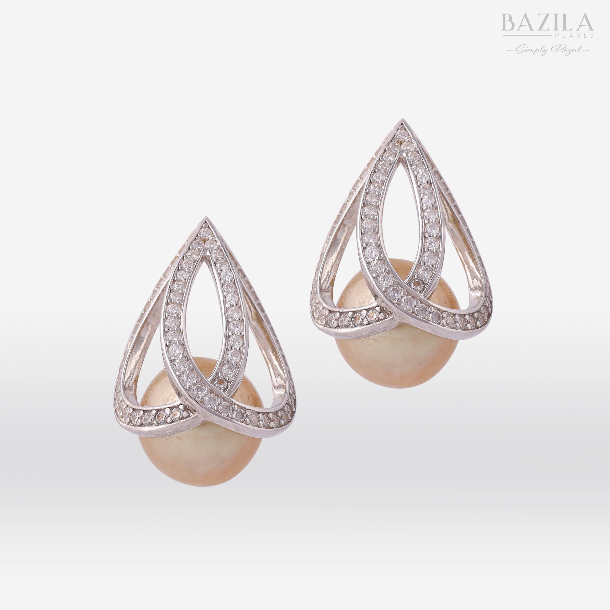 These exquisite earrings feature luminous golden South Sea pearls gracefully embraced by zircon-encrusted teardrop f...