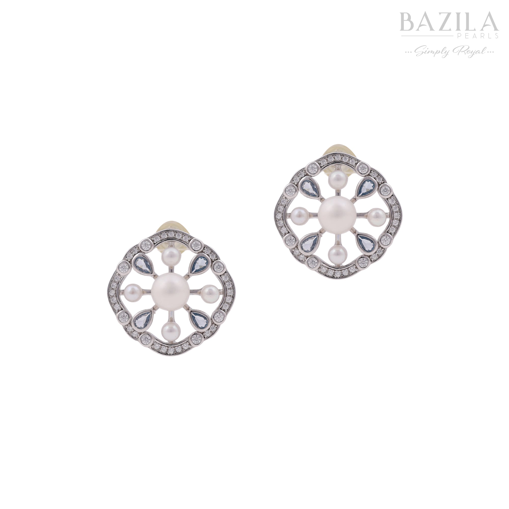These designer stud earrings combine modern finesse with classic elegance through their mandala-like arrangement of p...