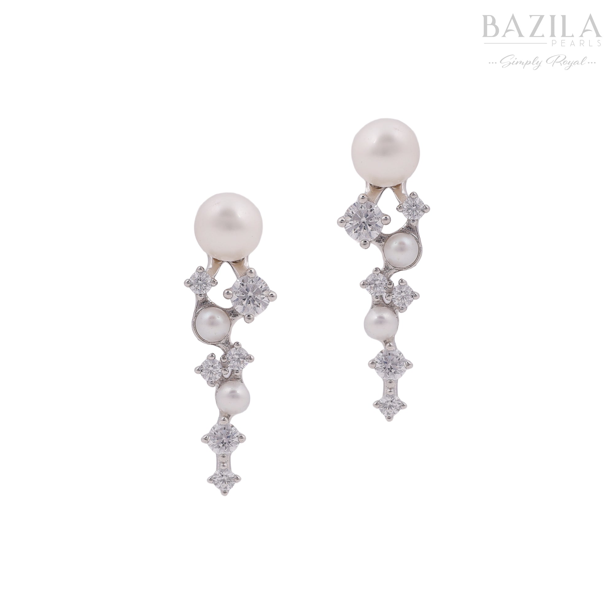 Classic Pearl & Crystal Linear Silver Earrings
