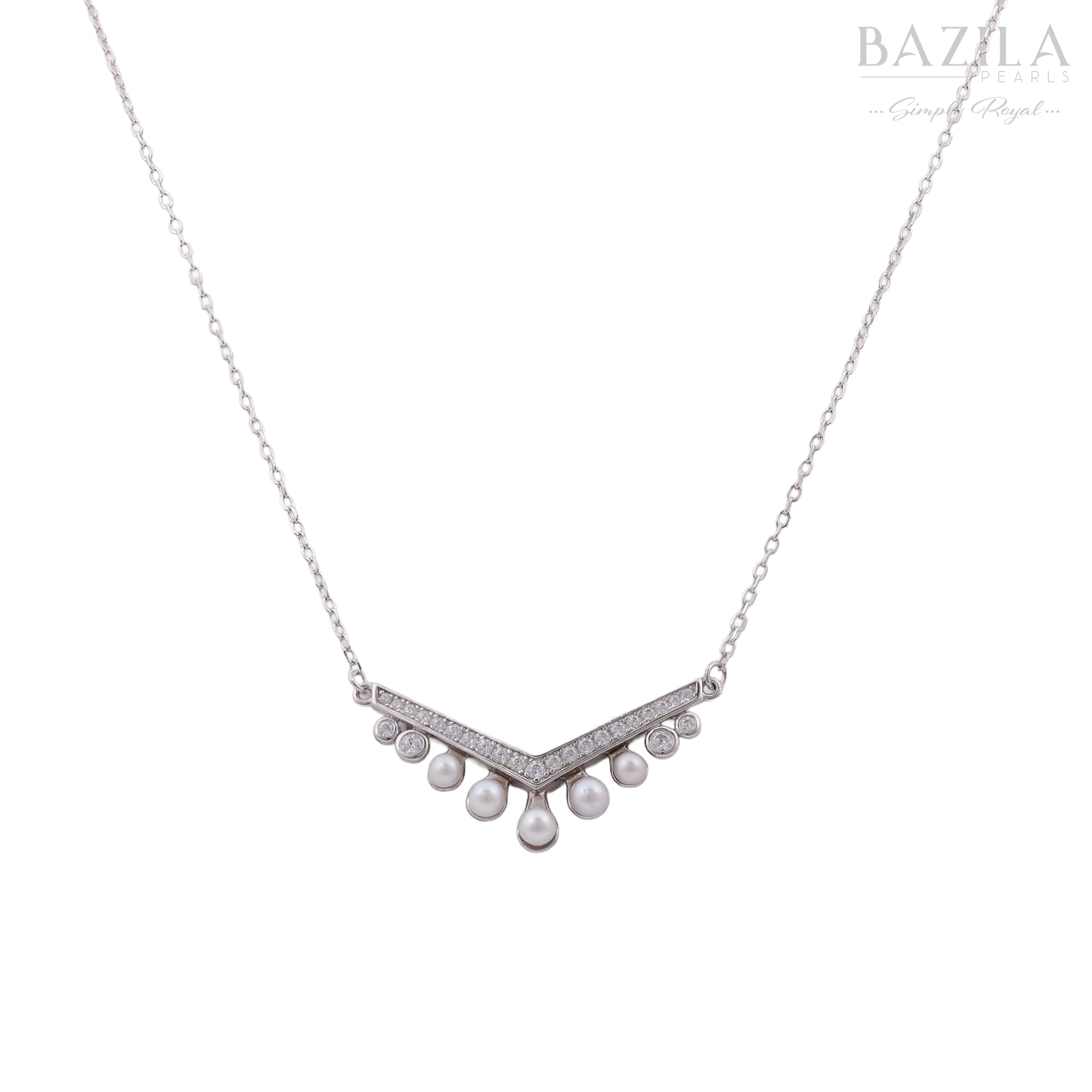 A chic V-design crafted with sparkling micro-set CZ stones is paired with gently dangling Freshwater Pearls to create...