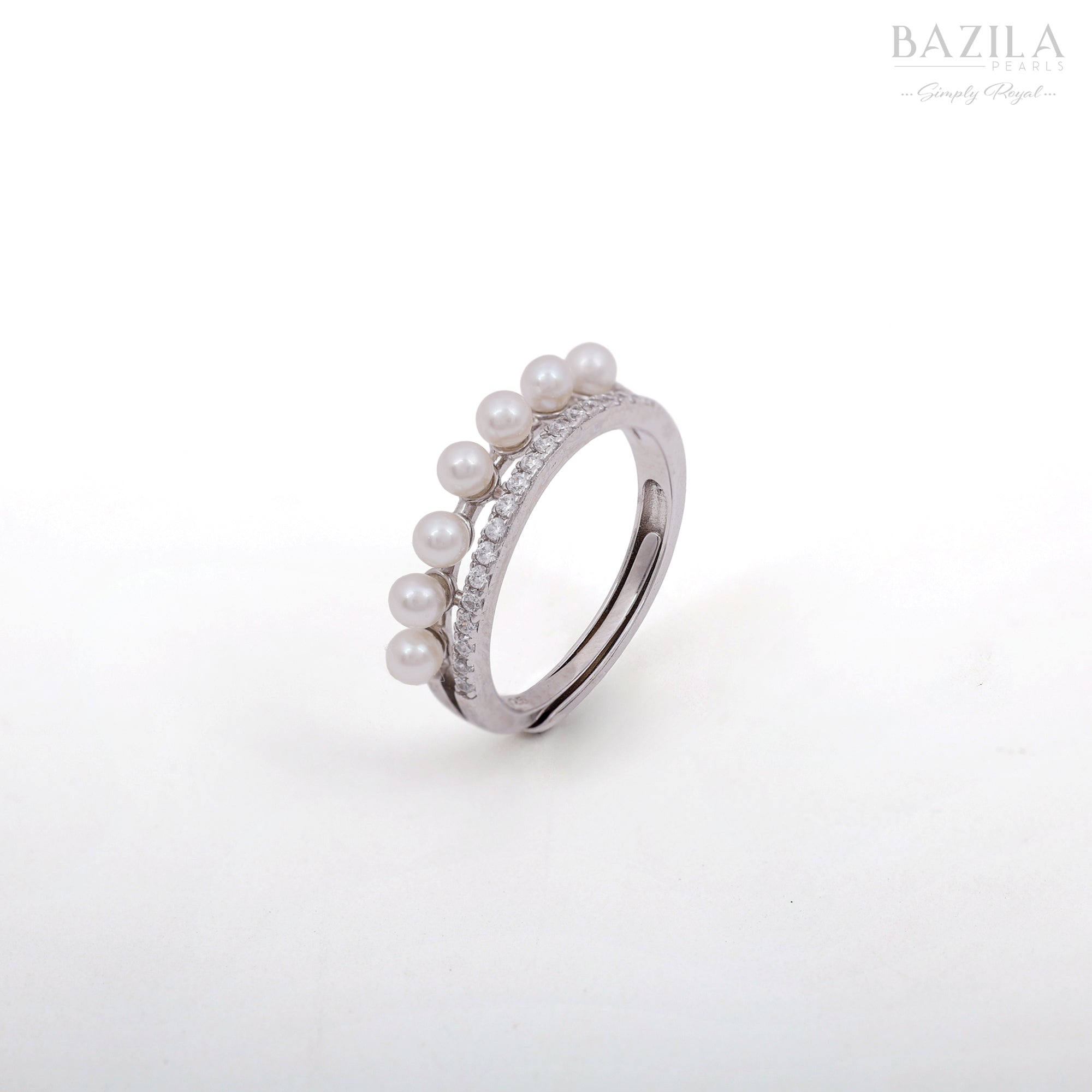 Elegant Freshwater Pearl Band Ring with Zircon Detailing