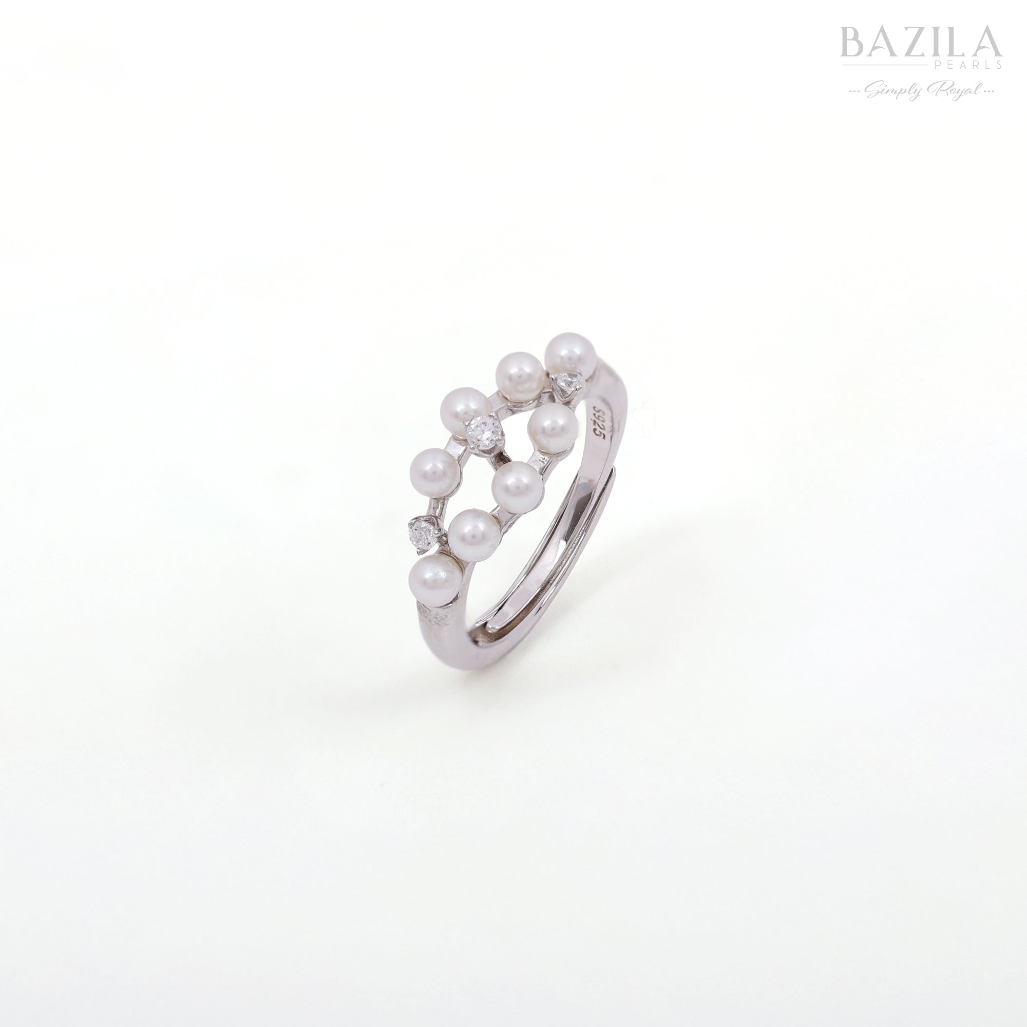 Elegant Multi-Pearl & Zircon Cluster Ring in Sterling Silver