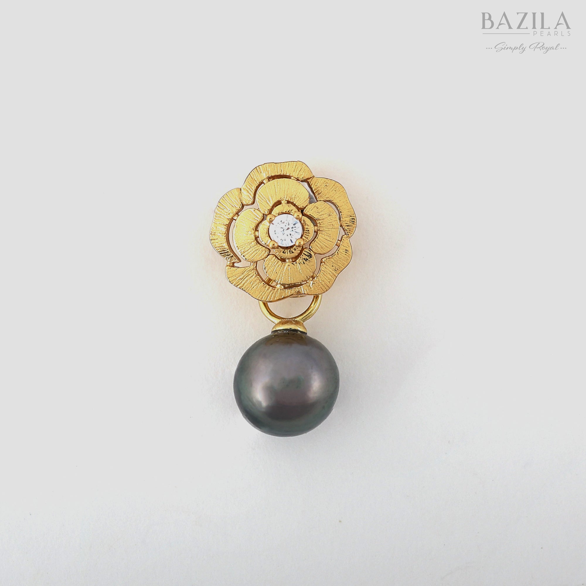Tahitian Pearl Drop Pendant in Silver with Blossom Accent
