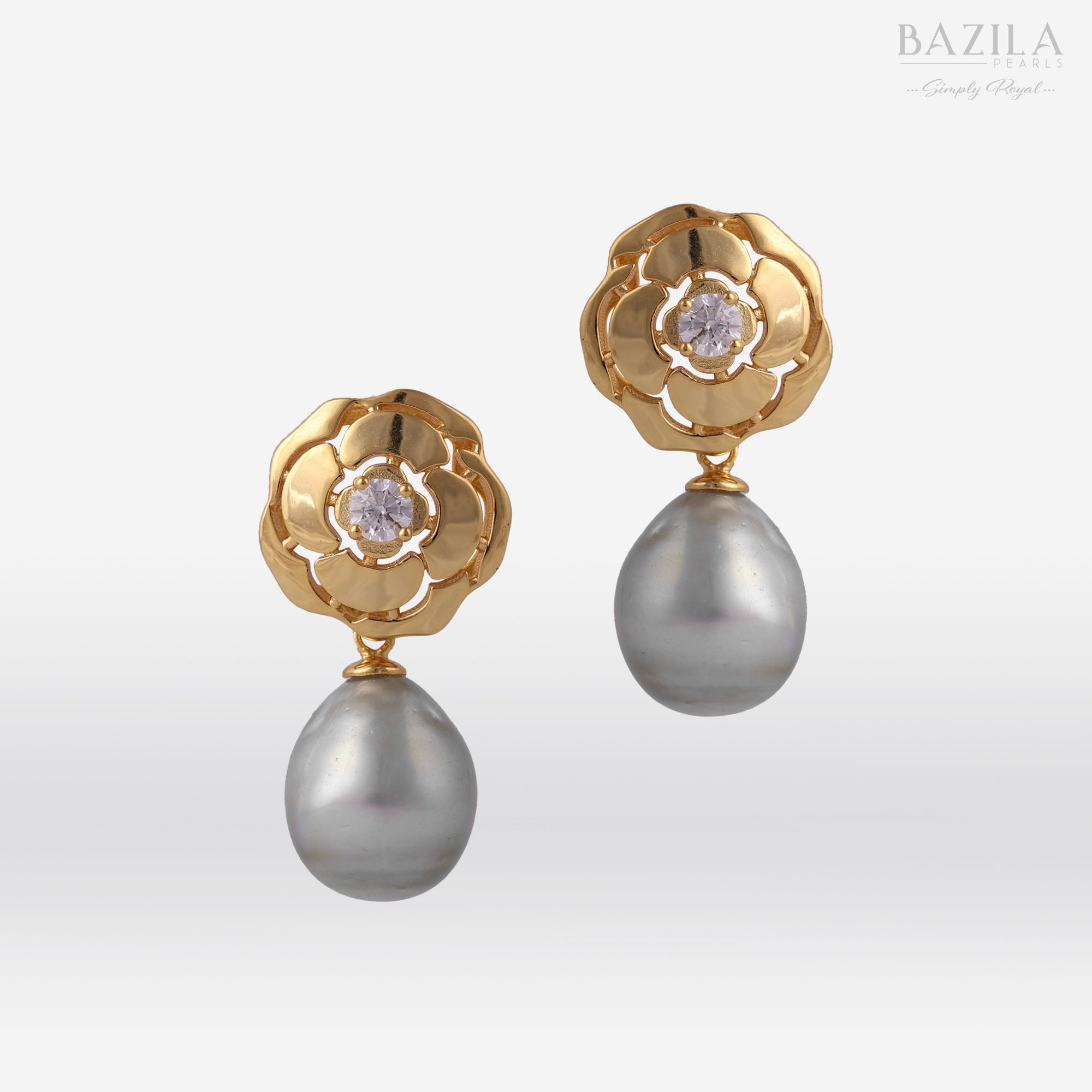 Handcrafted Sterling Silver Earrings with South Sea Pearls and Zircon Highlights