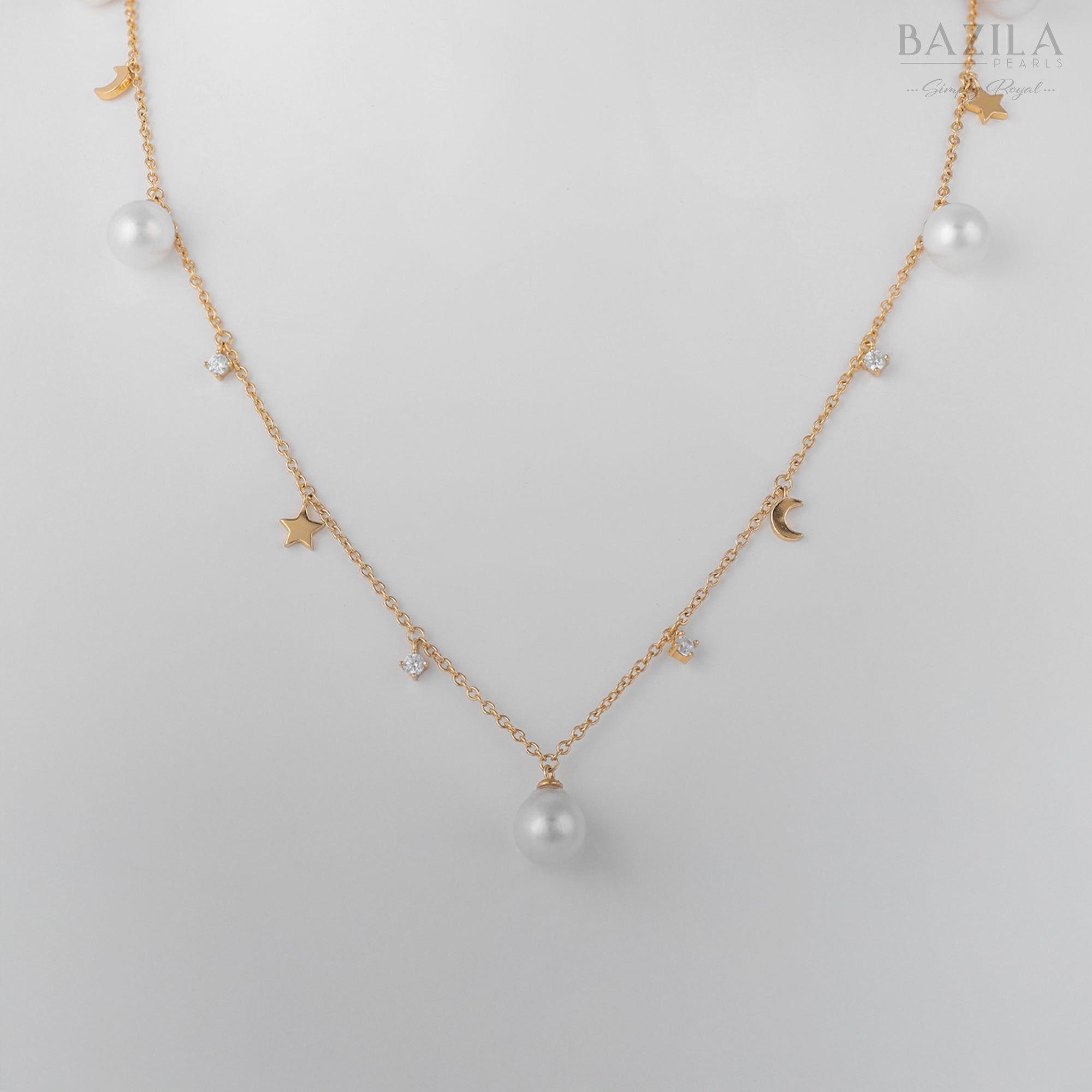South Sea Cultured Akoya Pearl Necklace in Sterling Silver with Star & Crescent Motifs