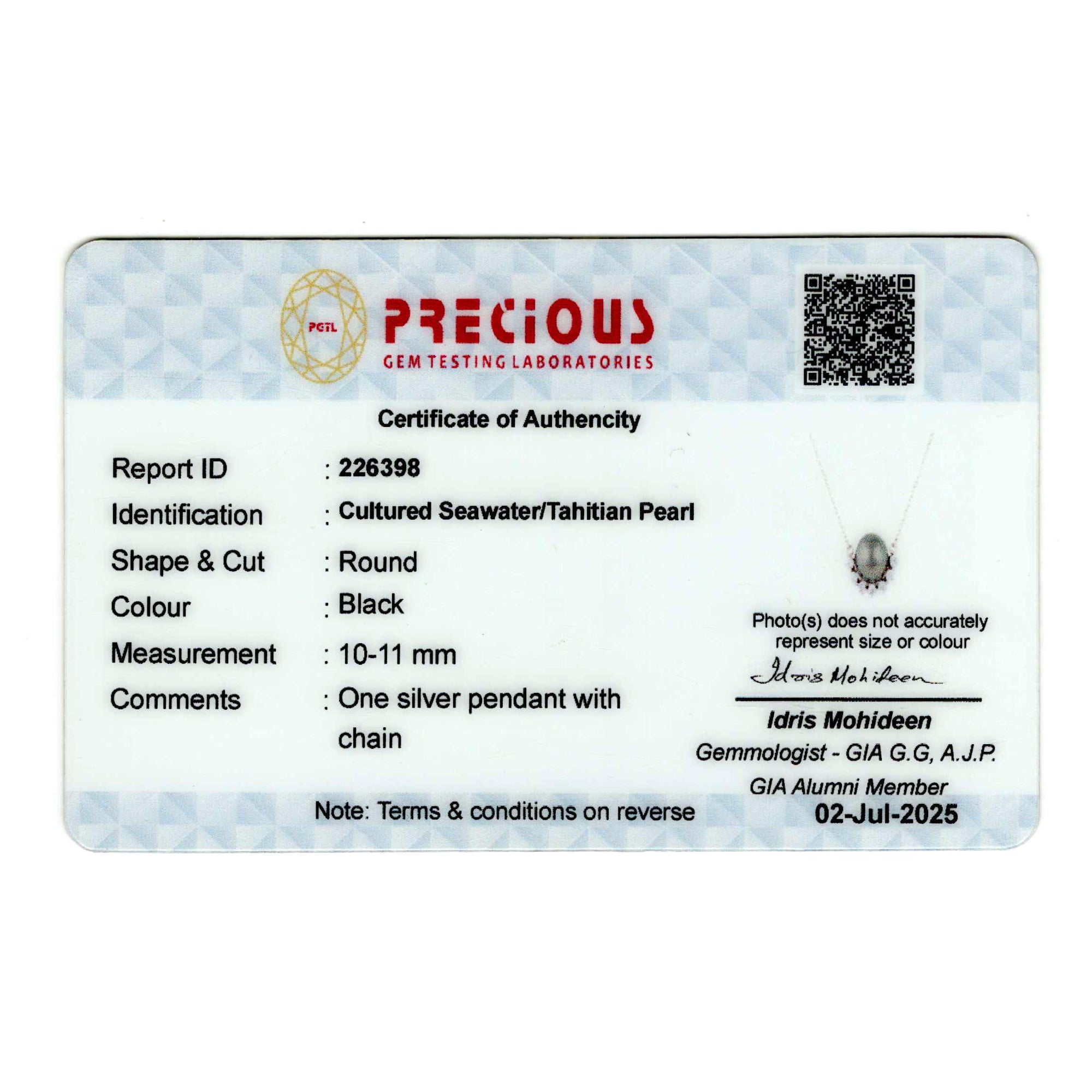 Discover the captivating allure of the Seawater Cultured Tahitian Pearl, gracefully set in sterling silver.Its deep,...