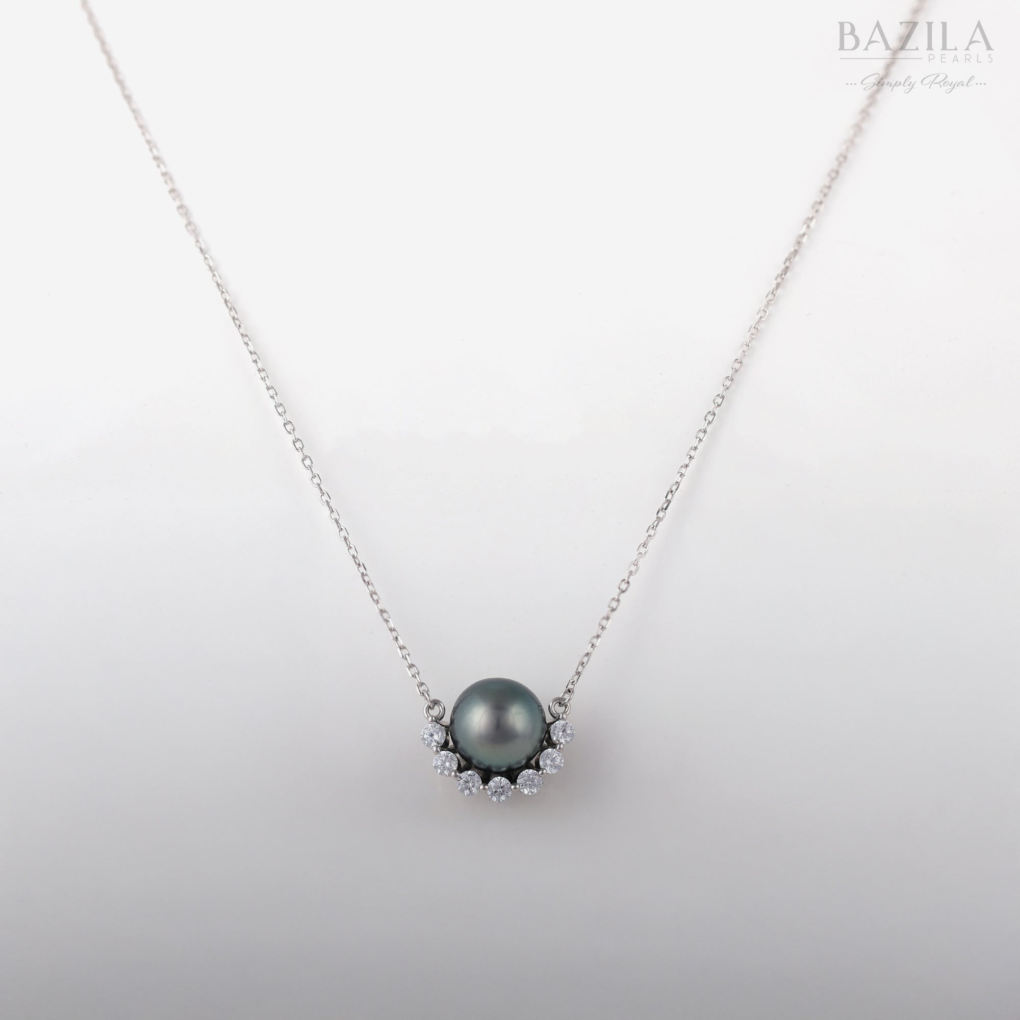 Tahitian Seawater Pearl Pendant in Silver with Brilliant Crystal Accents