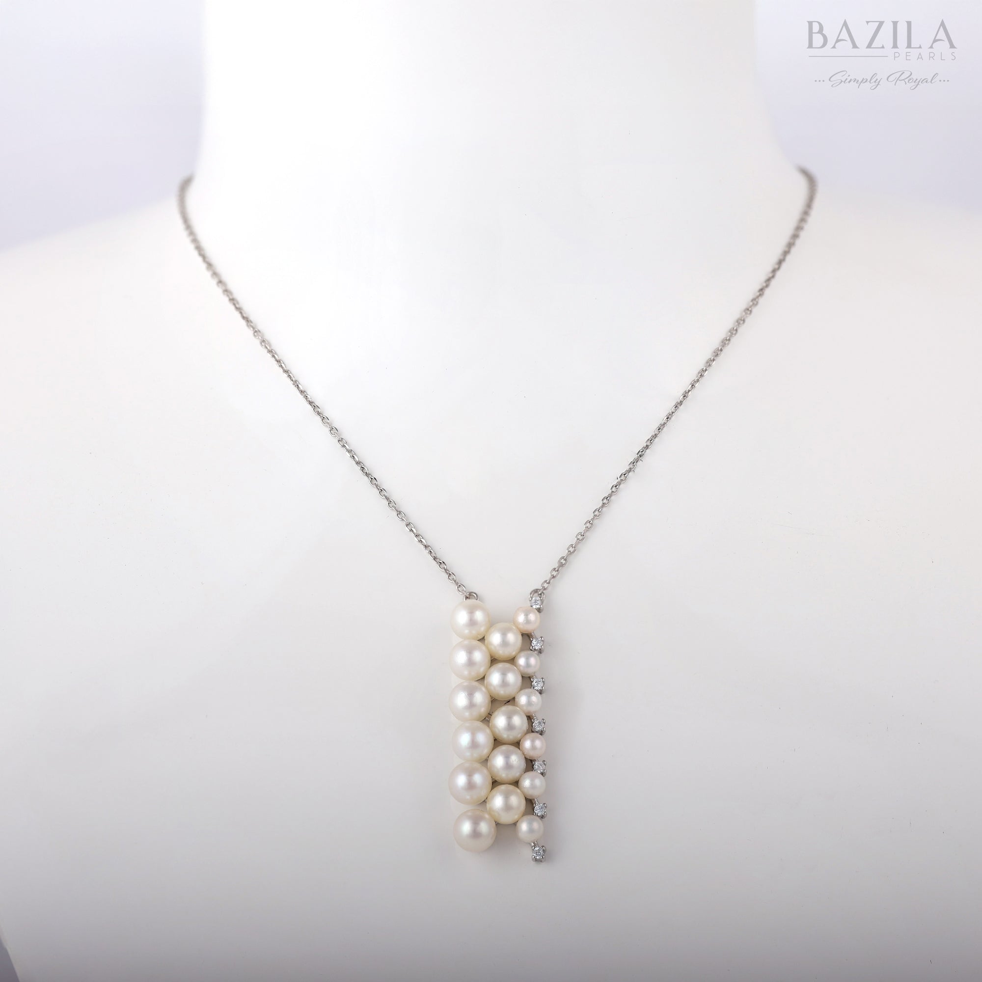 This exquisite pendant features a stunning cluster of Seawater Cultured Akoya Pearls, gracefully arranged in a vertic...