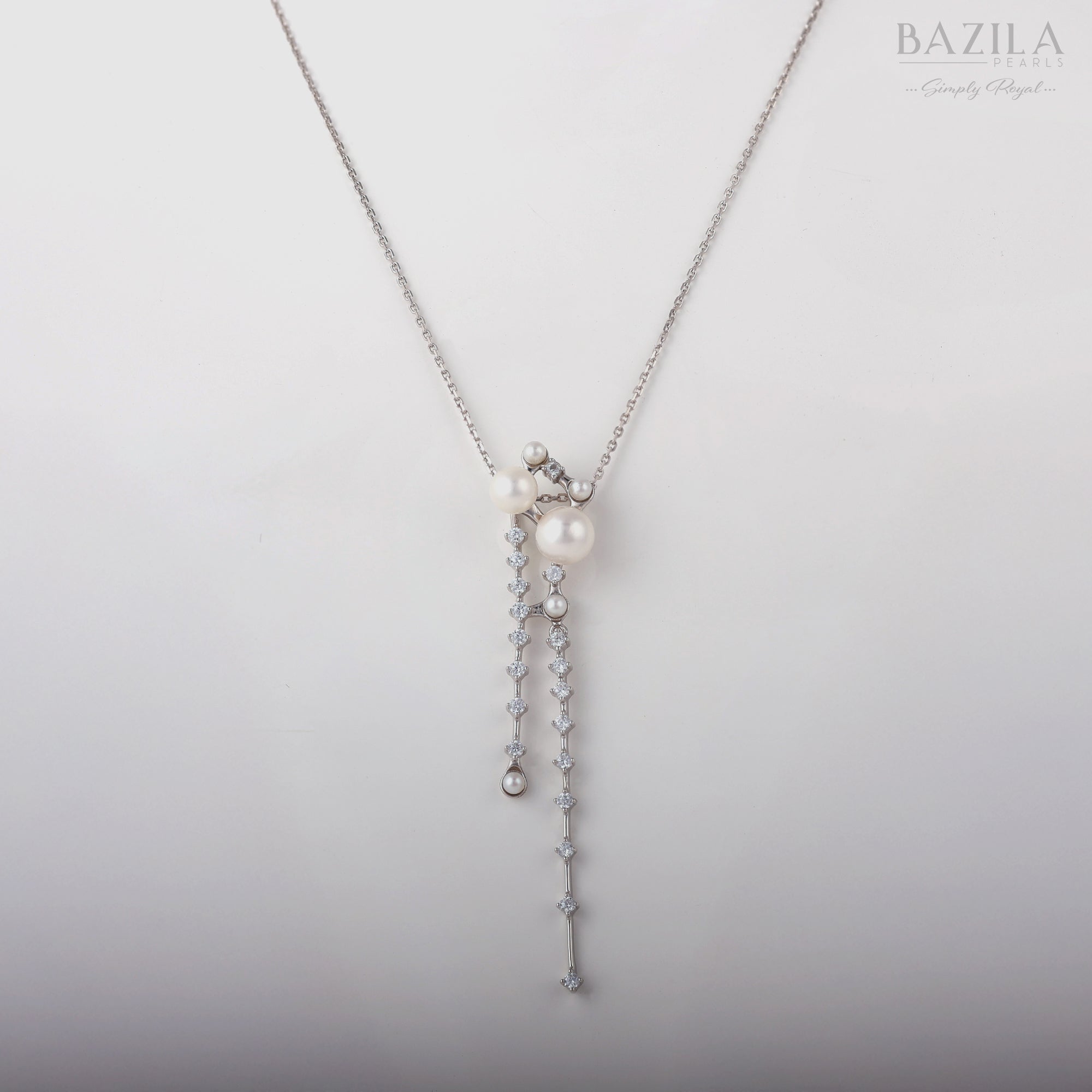 Seawater Akoya Pearl Pendant in Sterling Silver with Graceful Waterfall Design