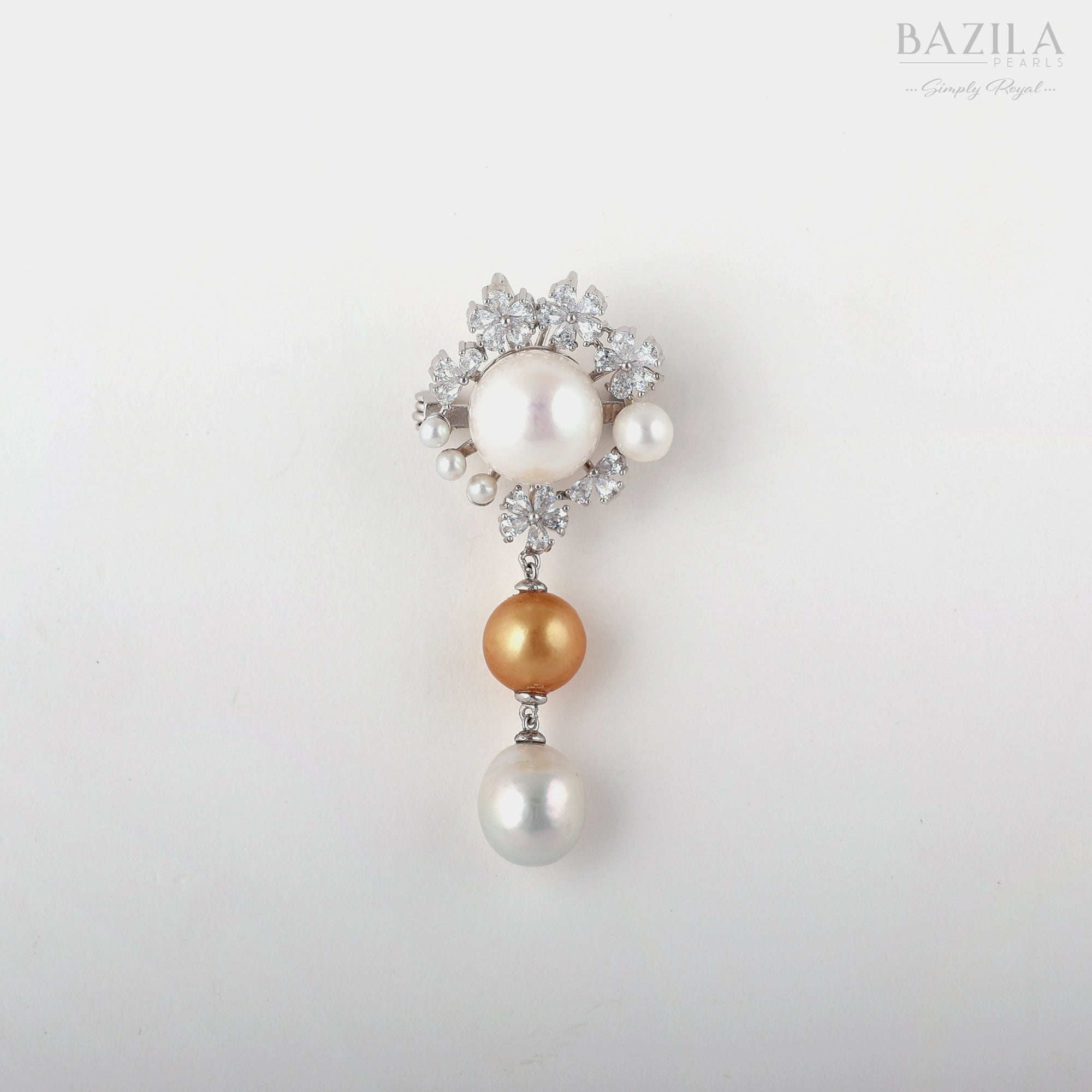 Exquisite South Sea Pearl Brooch in Sterling Silver with Zircon Embellishments