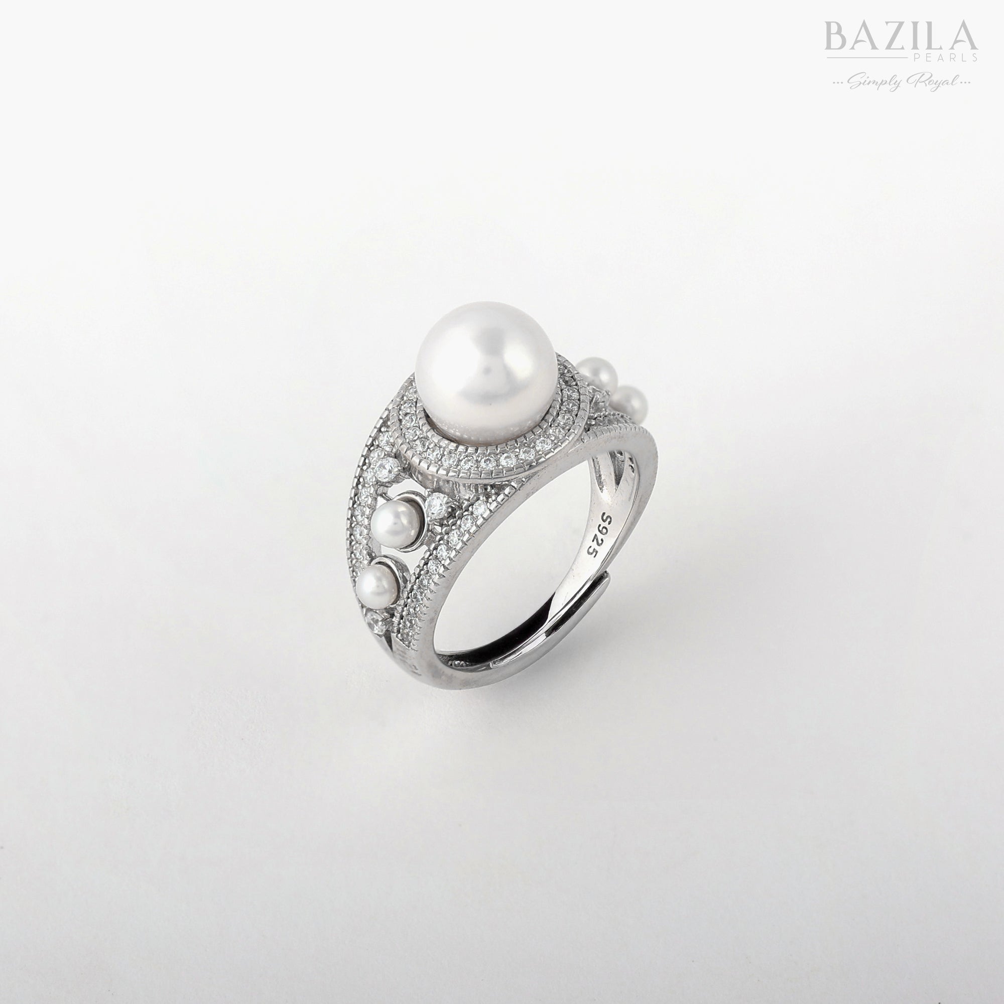 Lustrous South Sea Pearl Silver Ring in Vintage-Inspired Multi-Pearl Design